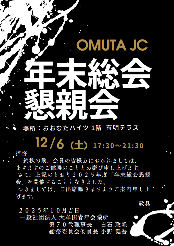 2025年度 年末総会懇親会を下記のとおり開催する運びとなりました。