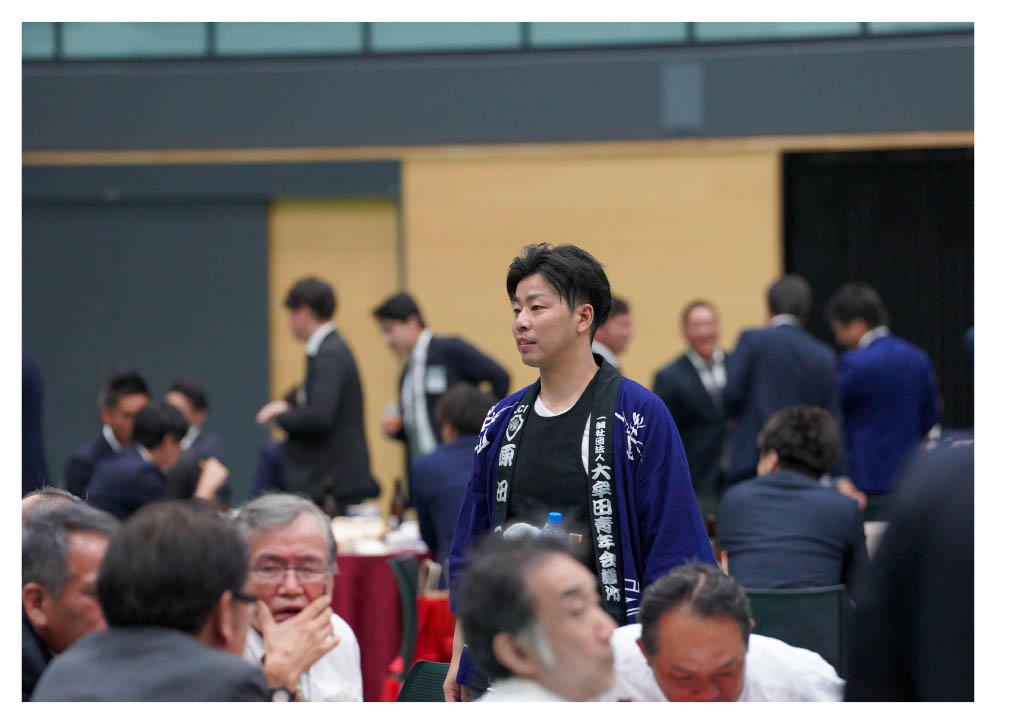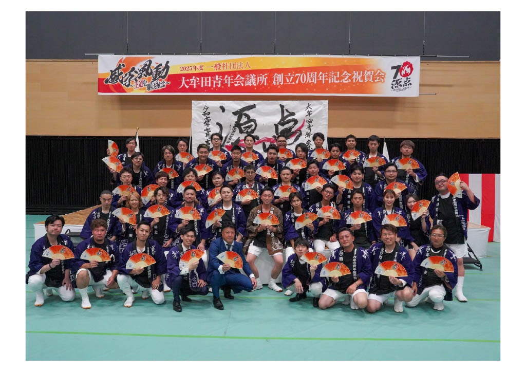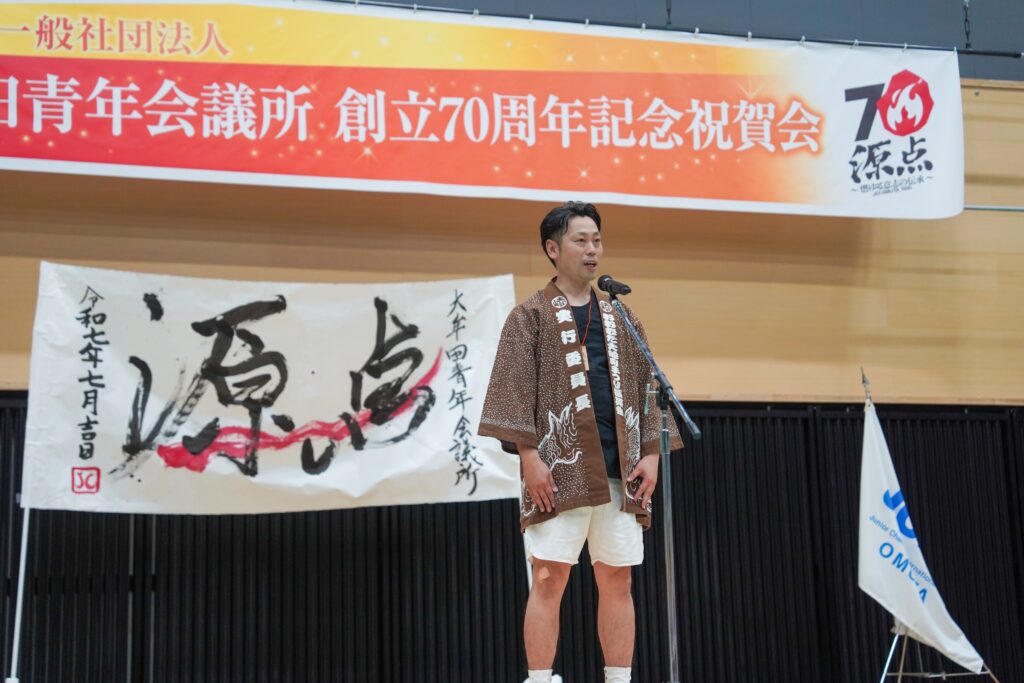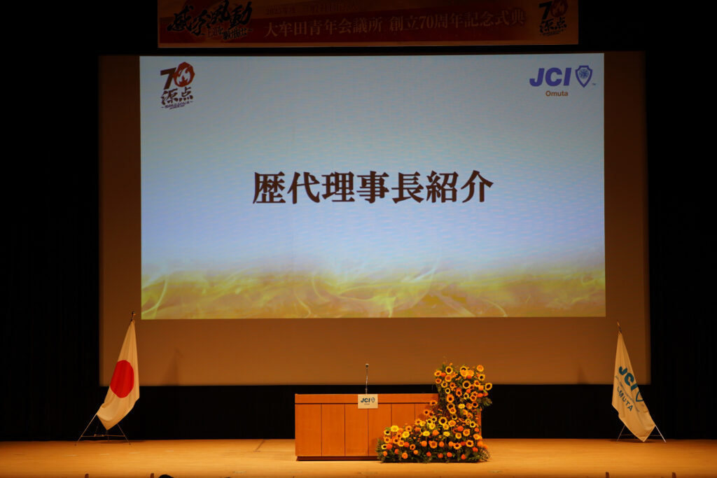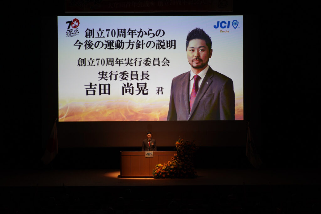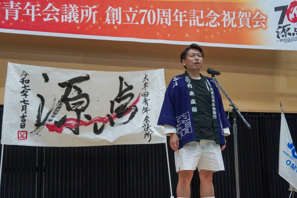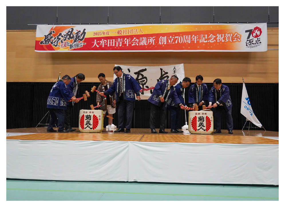 記念式典では、これまでの大牟田JCの軌跡を振り返る映像上映や、歴代理事長・来賓による祝辞を頂戴し、地域の発展に寄与してきた多くの魂の結集を改めて感じる時間となりました。続いて行われた祝賀会では、世代を超えた交流が生まれ、70周年を節目として、さらなる地域貢献への決意を互いに確かめ合う温かい場となりました。