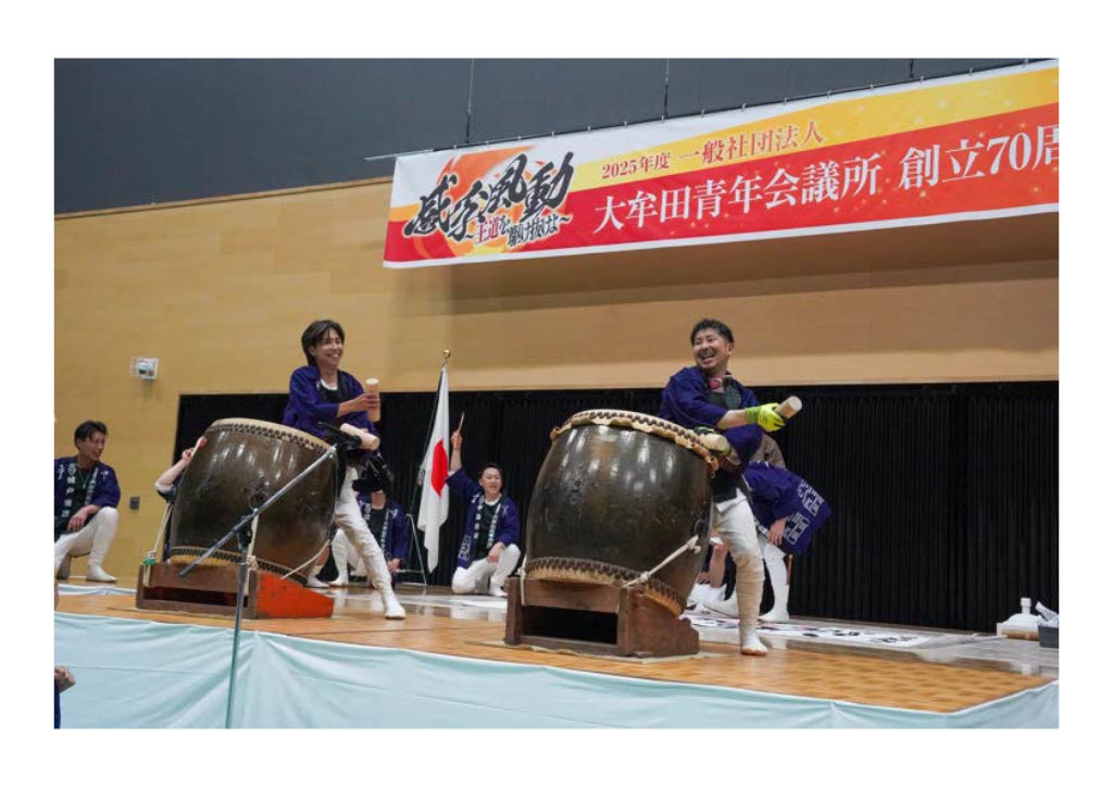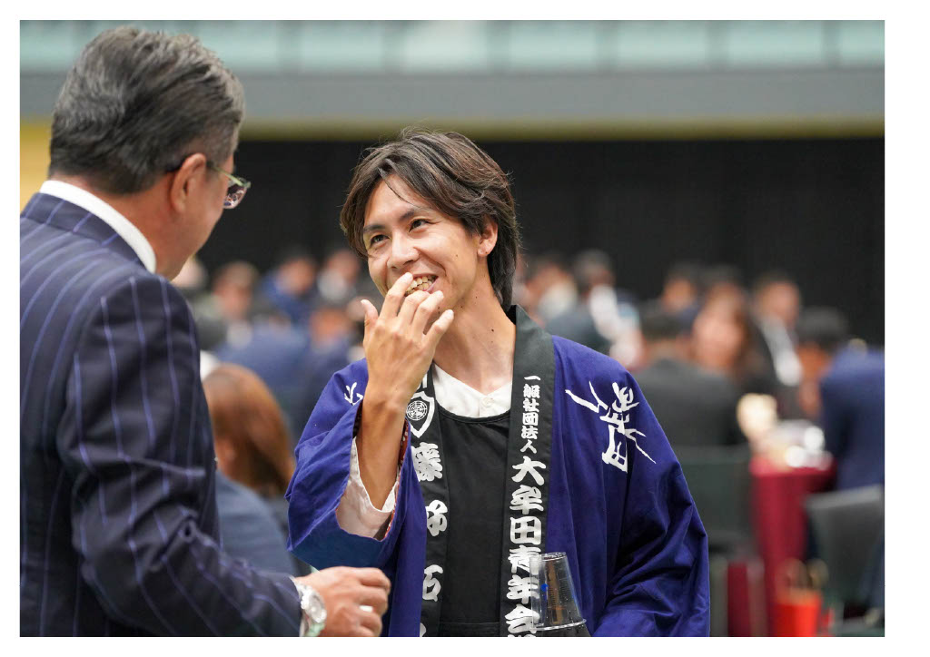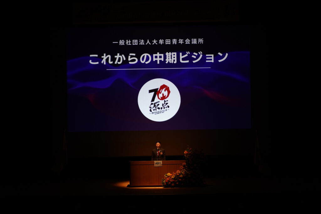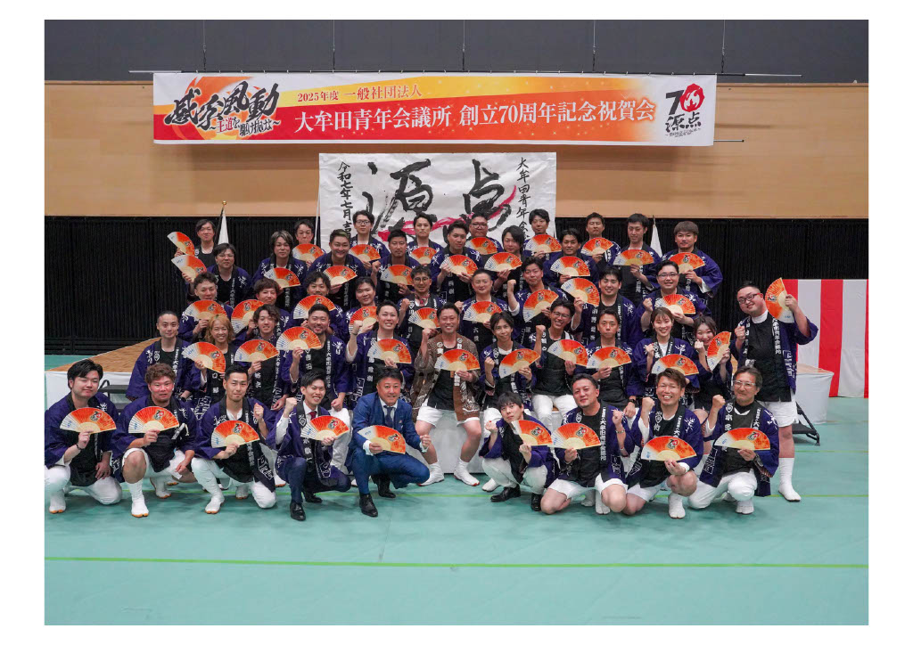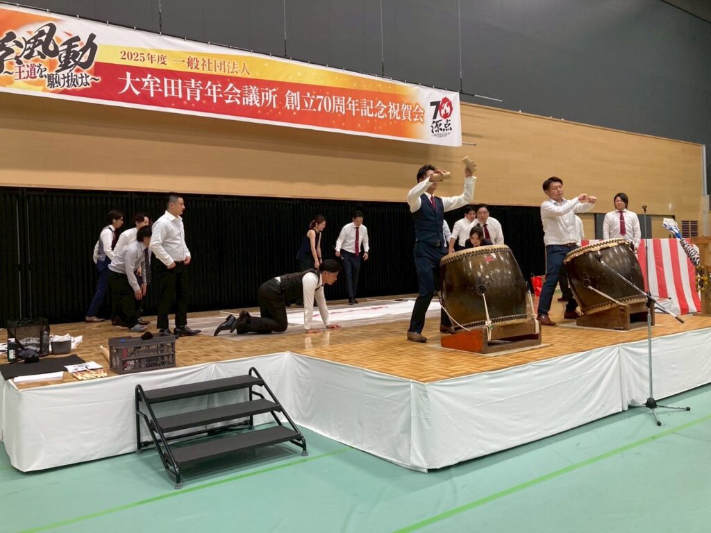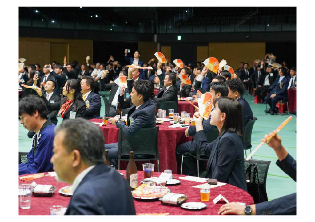 記念式典では、これまでの大牟田JCの軌跡を振り返る映像上映や、歴代理事長・来賓による祝辞を頂戴し、地域の発展に寄与してきた多くの魂の結集を改めて感じる時間となりました。続いて行われた祝賀会では、世代を超えた交流が生まれ、70周年を節目として、さらなる地域貢献への決意を互いに確かめ合う温かい場となりました。