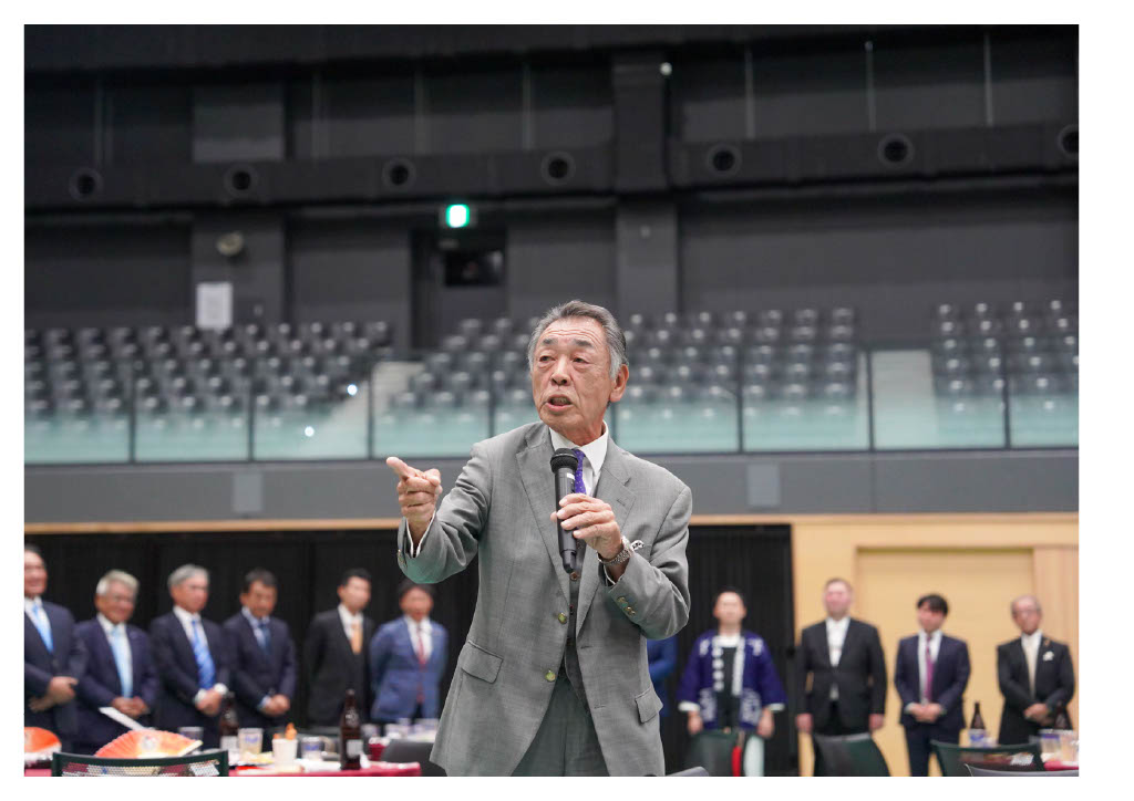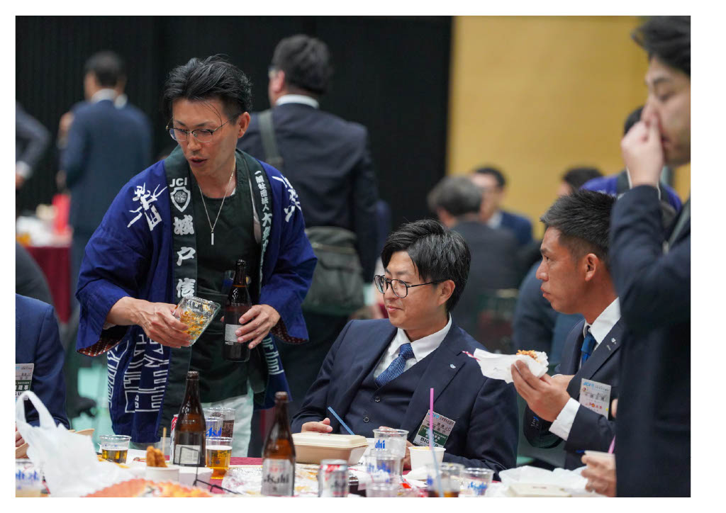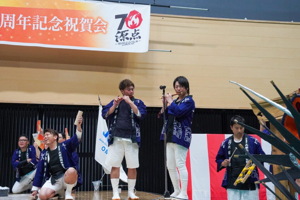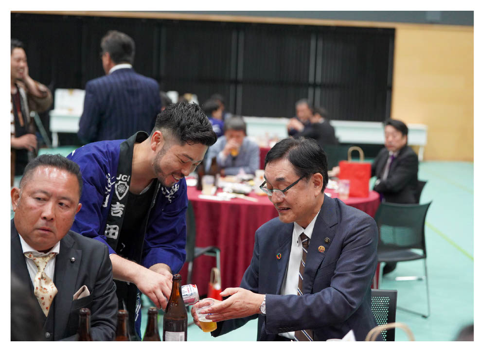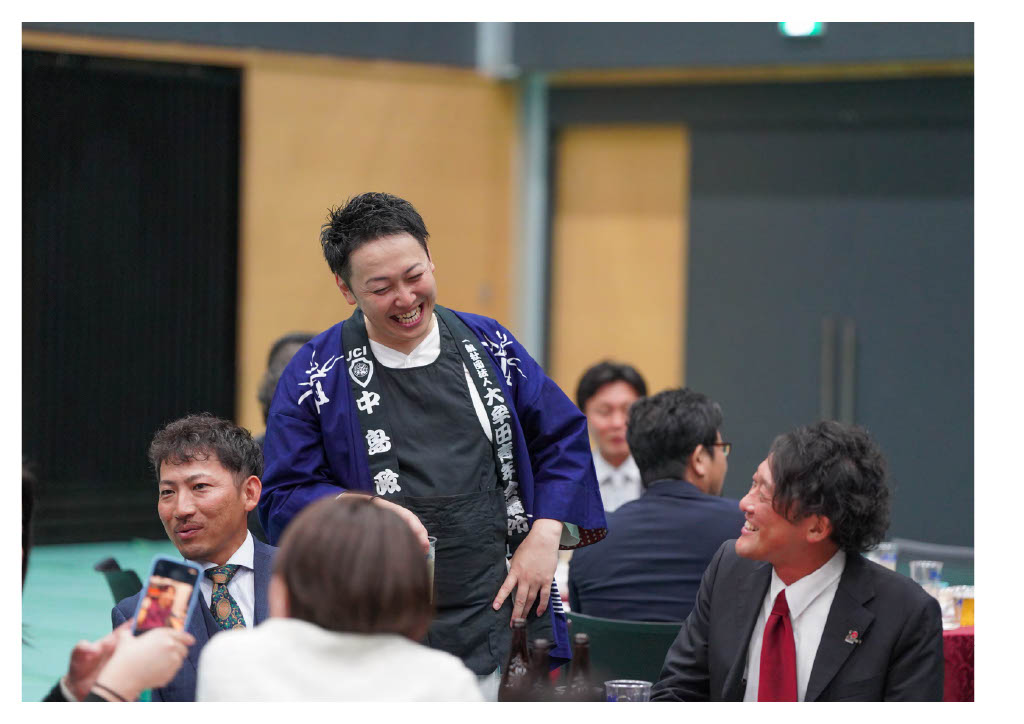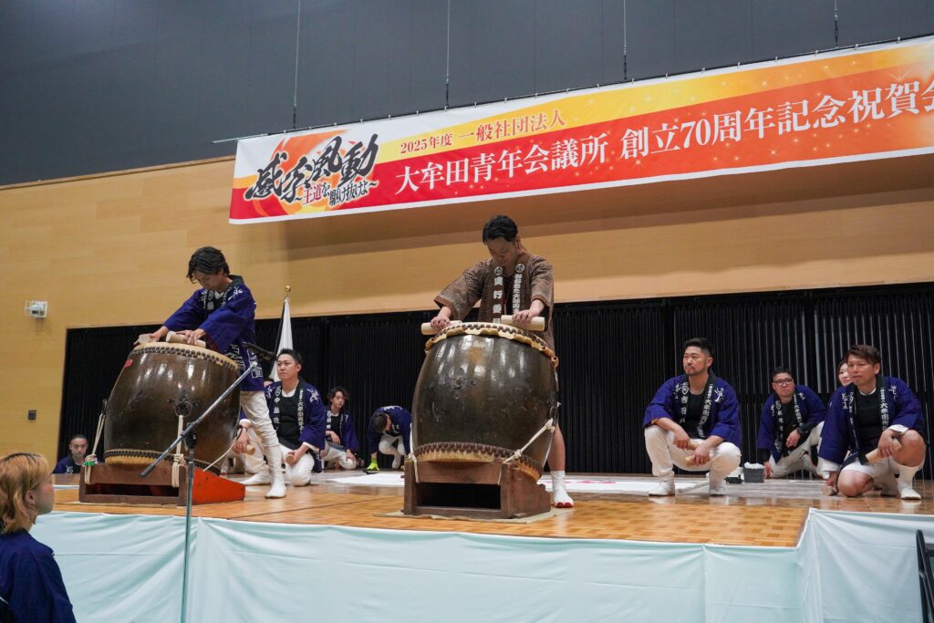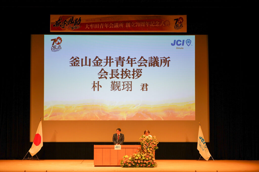 記念式典では、これまでの大牟田JCの軌跡を振り返る映像上映や、歴代理事長・来賓による祝辞を頂戴し、地域の発展に寄与してきた多くの魂の結集を改めて感じる時間となりました。続いて行われた祝賀会では、世代を超えた交流が生まれ、70周年を節目として、さらなる地域貢献への決意を互いに確かめ合う温かい場となりました。