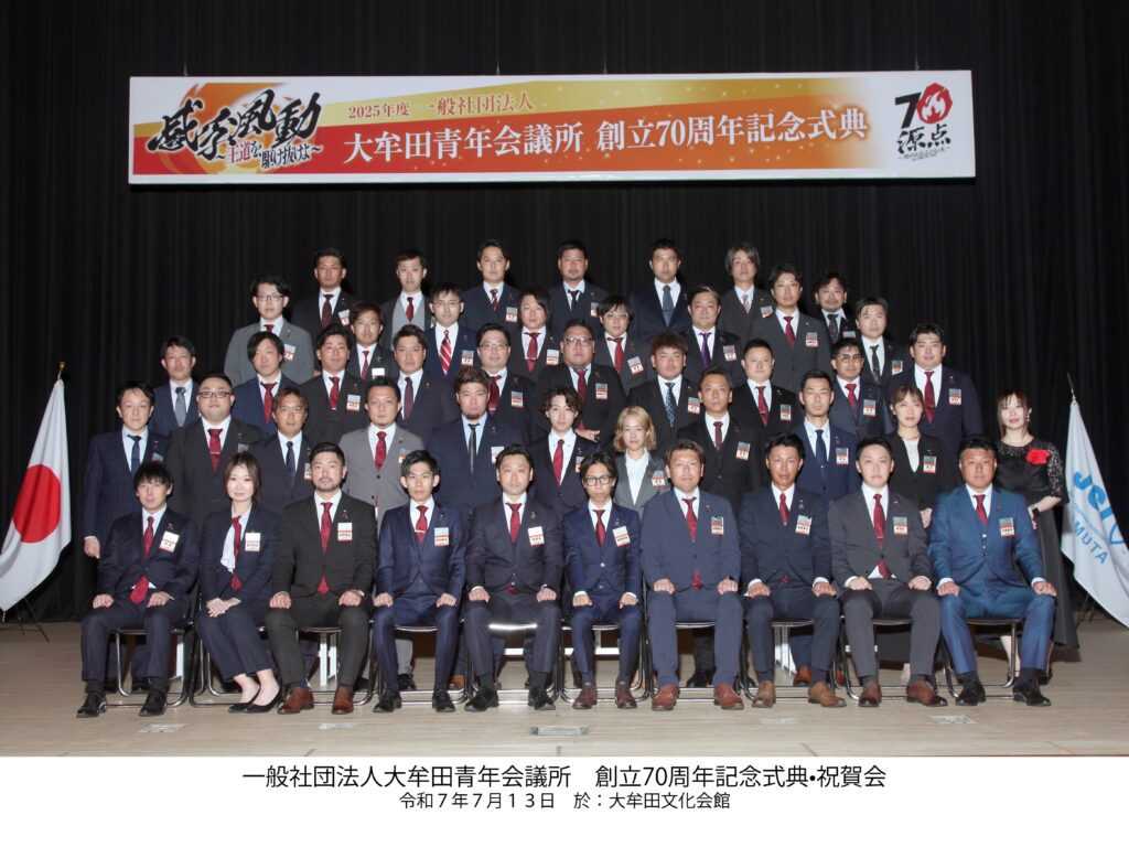 大牟田青年会議所は、令和7年7月13日(日)、創立70周年を記念する式典ならびに祝賀会を盛大に開催いたしました。当日は、多くのご来賓の皆さま、各関係団体の皆様、OBの諸先輩方、そして現役会員がご臨席くださり、70年にわたり受け継がれてきた運動の歴史と、未来への新たな歩みを共有する貴重な一日となりました。