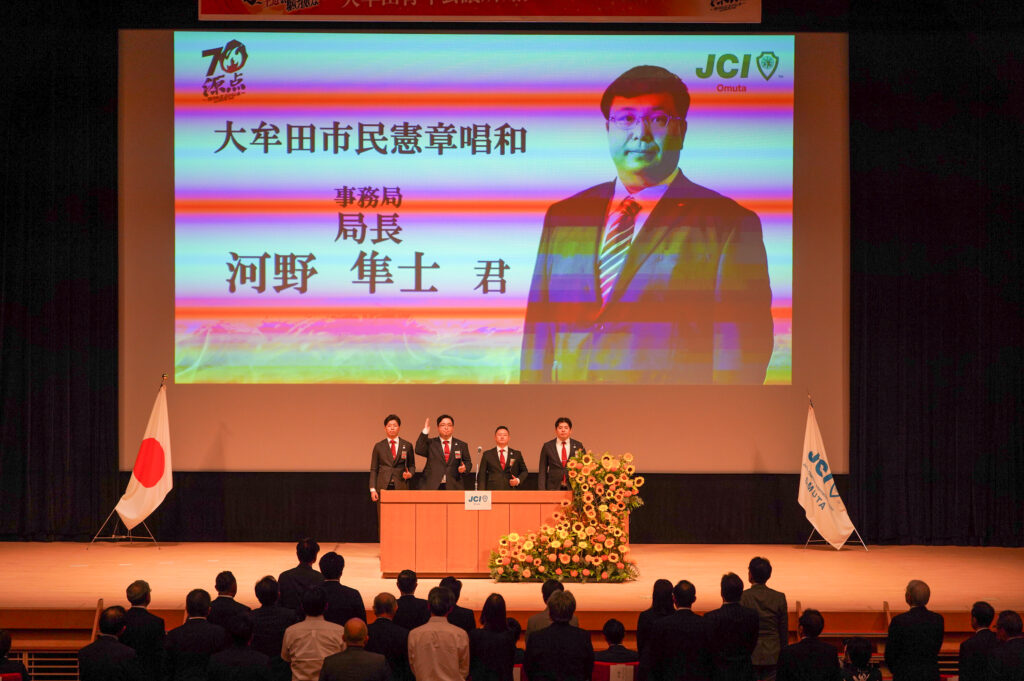 今回の式典・祝賀会が盛会のうちに終了できましたのは、準備にご尽力いただいた関係者の皆さま、そして日頃より大牟田JCの活動を支えてくださる皆さまのおかげです。深く感謝申し上げます。